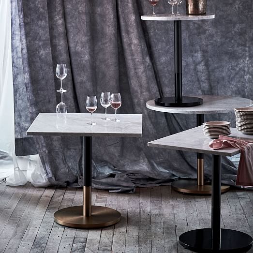 Designed for cafes and restaurants, this scratch-resistant marble table carves out a dining nook just right for parties of two. Each table base is smartly equipped with adjustable glides that adapt to varying floor levels—making the dreaded table-wobble a thing of the past. Use them in multiples to create more dining space that can be separated later.