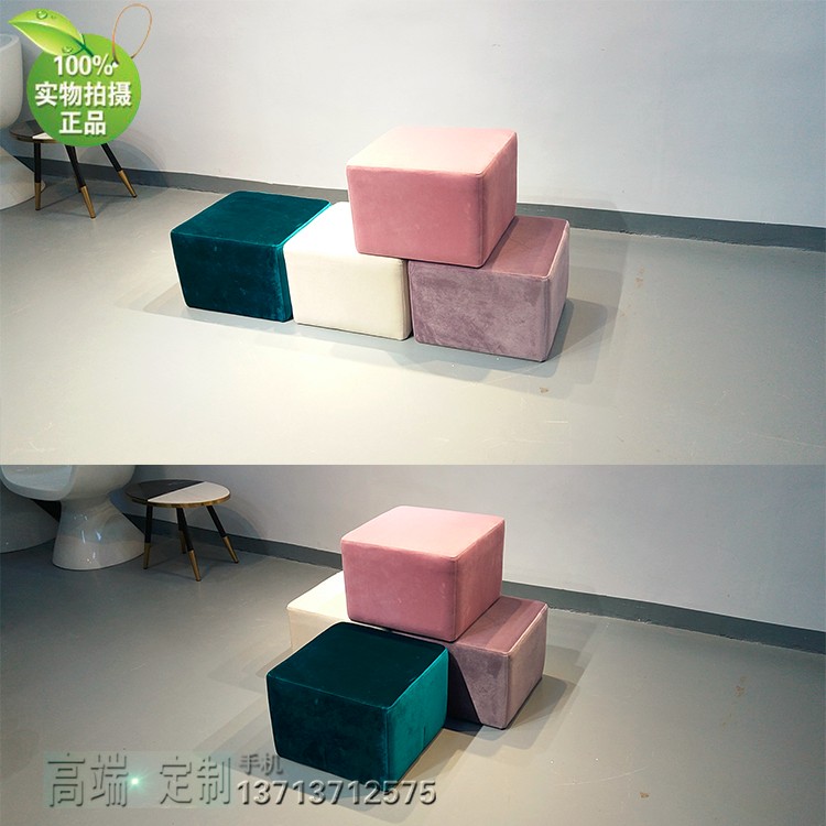 實(shí)物現(xiàn)貨 換鞋凳矮凳豆腐塊布藝絨布大象椅北歐沙發(fā)凳椅長凳 stool墩美容榻