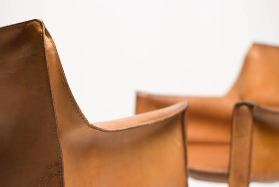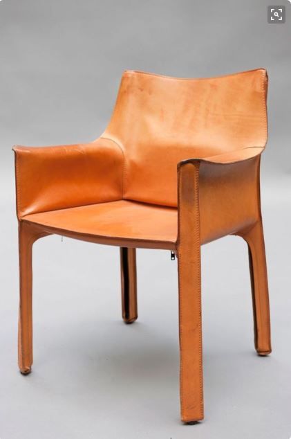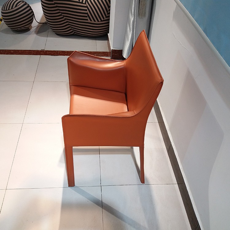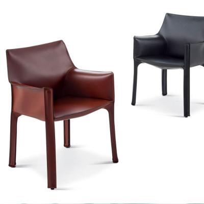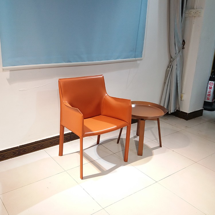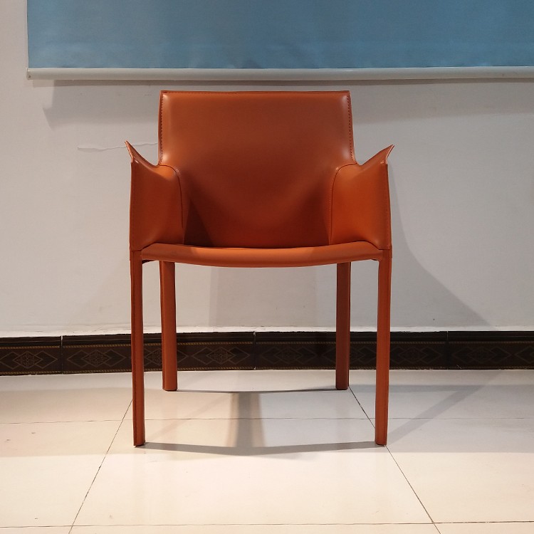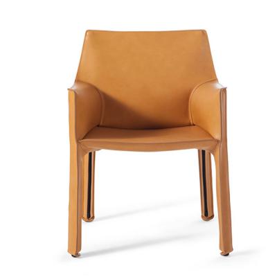 - Cassina設(shè)計師Mario Bellini 餐椅休閑椅酒店會所馬鞍皮扶手餐椅樣板房 馬鞍椅咖啡廳硬皮