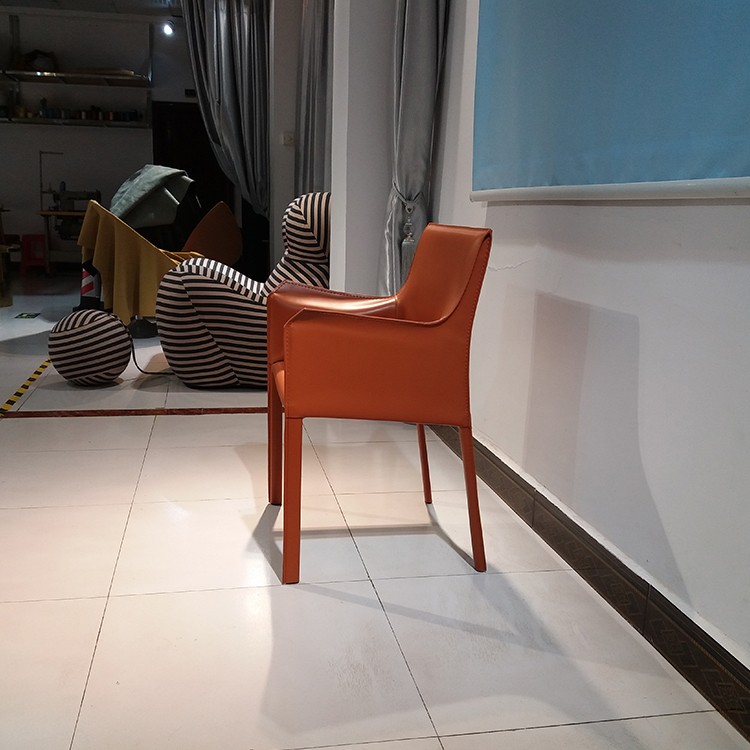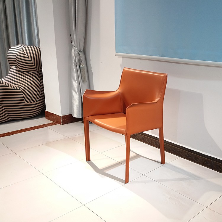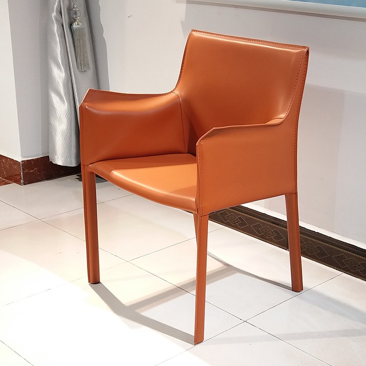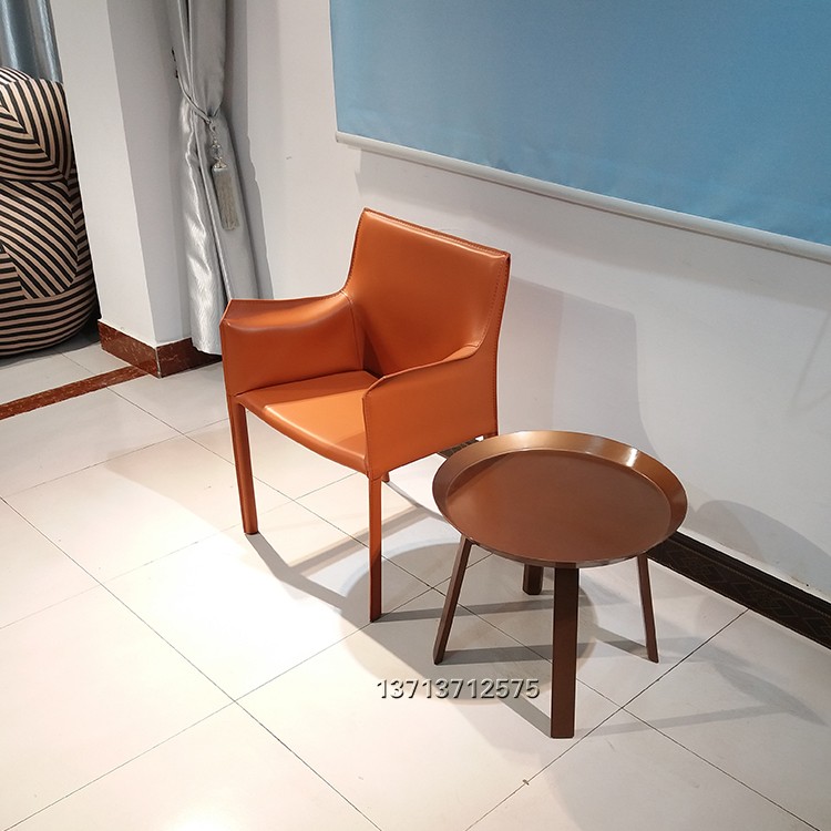 北歐設(shè)計師 餐椅休閑椅酒店會所馬鞍皮扶手餐椅樣板房咖啡廳硬皮