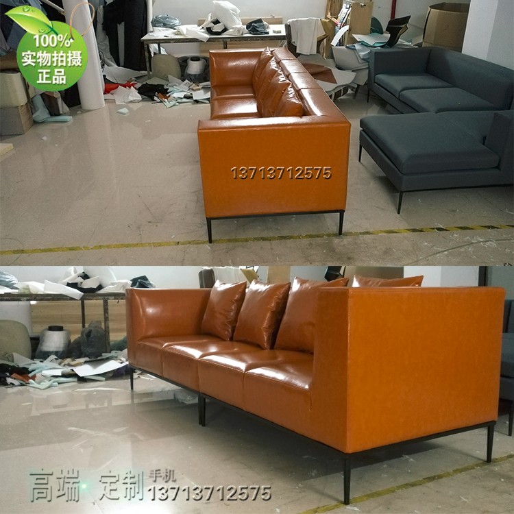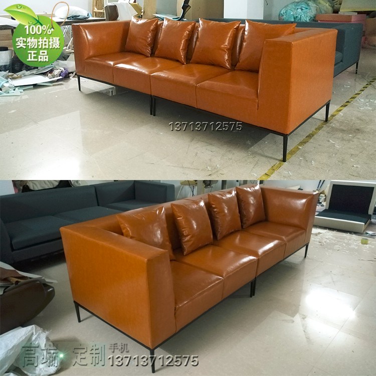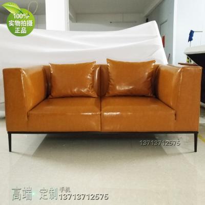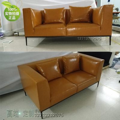 雙人PU沙發(fā)仿真皮 北歐設(shè)計(jì)師 簡潔五金辦公酒店會所 家用商用