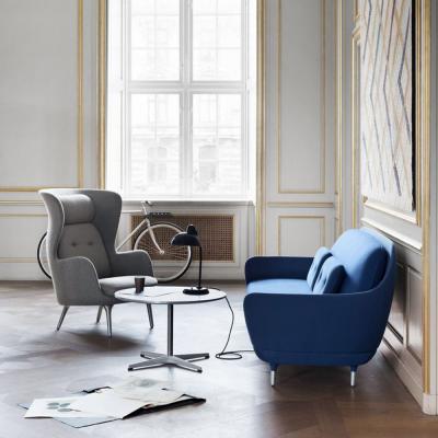 Seat height: 43cmMaterials & FinishesRo is presented in 9 unique designer colours all with a shade of grey to fit all interiors. To make the chair vivid and more inviting, the colours are always a mix of two fabrics; one fabric for the shell and one for the cushions. Below the seat cushion on the base there is a small logo and signature plate in satin brushed aluminium hand sewn on to the chair. The four legs are made in brushed cast in aluminium. Each leg has nylon glides suitable for a majority of floors.