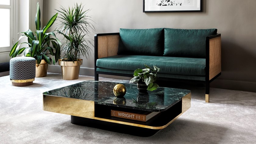 綠色大理石托盤。?實(shí)木框架和固體橡樹(shù)腿馬特黑色沾銅捆扎,?