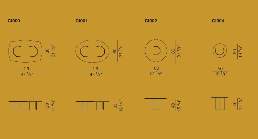 The distinguishing feature of CI collection is the careful search for details and for the refined particular to define a product which can be well placed in luxury living.? The base is in metal and the top is in bevelled marble in four precious natures: Brown Emperador, Stardust, Brown Damasco and Gold Calacatta with finish either glossy or matt.? The marble top bevelling is a very refined manufacture which gives extreme lightness.? At the same time it is the distinguishing element of a very high quality product.?