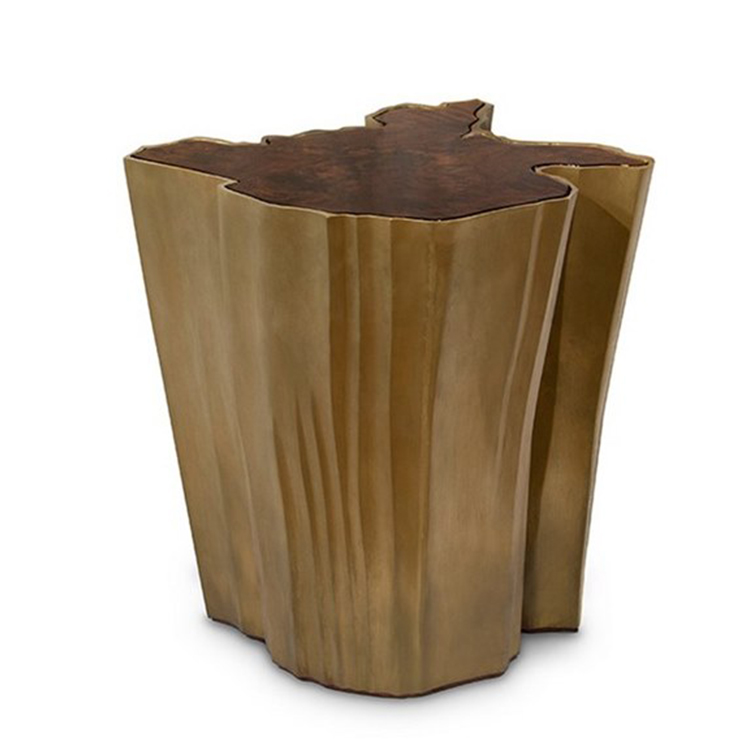 Sequoia is one of the largest and tallest trees in the world that grows in California.? Just like it, SEQUOIA Side Table is a force of Nature.? The distinct walnut root veneer top shows the passage of years and the base in brass with aged patina adds a refined touch.? This wooden side table proves the beauty of the action of time.?