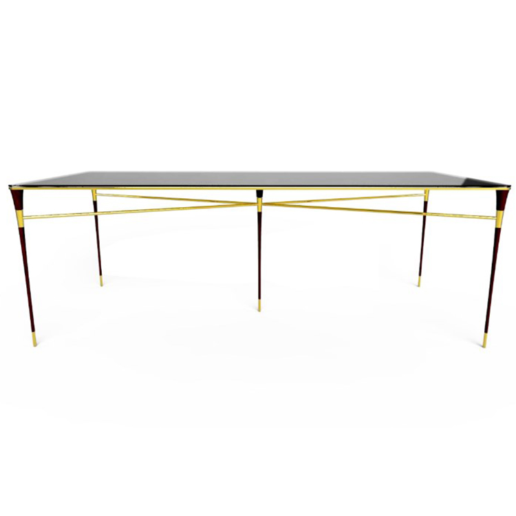 A cosmopolitan dining table and unique that consists of five feet united by an unusual manner through a fine and subtle golden line, reminiscent of the sunset on the skyline of the big cities.?
