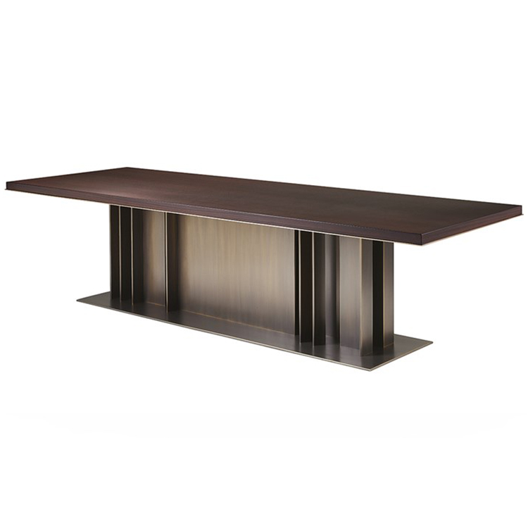 - Promemoria系列家具 NILA 會議桌子餐椅辦公室不銹鋼電鍍銅色 實(shí)木大理石桌面桌腳