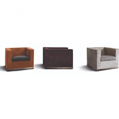 第一款:Minotti手提箱線方正磚頭廣塊單人沙發(fā) 不銹鋼電鍍槍黑包邊 迷彩布藝Minotti