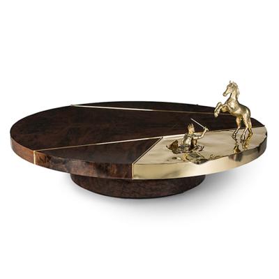 Materials: Polished brass + varnish, mdf structure, walnut root veneer + high gloss varnish.