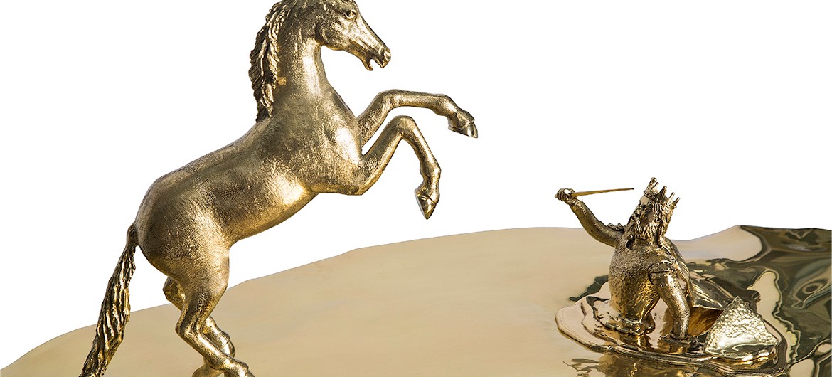 Chess was invented in Asia about 1500 years ago but it was in the XIII century that modern chess was born and implanted in Europe. The Chess Table is inspired by the chess board and the game’s most important move, the checkmate! The Chess Table depicts the ultimate play in which the Horse defeats the King, who metaphorically melts into a space that recreates a battlefield. These pieces were designed by Bessa and hand carved. A piece of art and design that recreates one of the most ancestral and strategic games of civilization.