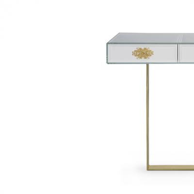 Filigrana is a piece with a magnificent and elaborate handwork. Bessa was inspired by the luxurious heritage of Portuguese jewelry to create this piece. The drawers worked in filigree mark the excellence of the piece! Pure handmade jewelry crafted by the most experienced Portuguese artisans. The front of each drawer has one key-shaped handle that was distinctively worked and silver-plated with fine gold. This is a unique piece that astonishes one by the delicacy and refinement of its extraordinary details. The base of the table is made of solid brass and was inspired by a jewelry bracelet. Filigrana is a piece of extreme elegance with a sublime touch of luxury introduced by the Portuguese filigree.
