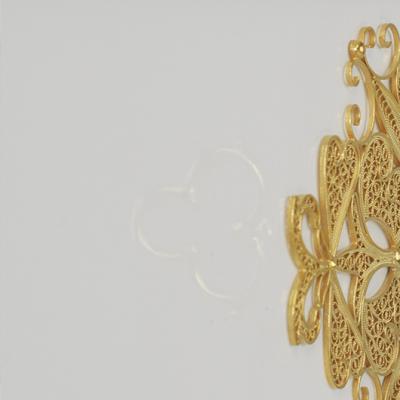 菲利格拉納是一件手工制作精美的作品。貝薩的靈感來自葡萄牙珠寶的奢華傳統(tǒng),創(chuàng)造了這件作品。這些細(xì)絲抽屜標(biāo)志著這件作品的卓越!由最有經(jīng)驗(yàn)的葡萄牙工匠手工制作的純手工珠寶。每個(gè)抽屜的前面都有一個(gè)鑰匙形狀的把手,把手經(jīng)過獨(dú)特的加工,上面鍍有純金。這是一件獨(dú)特的作品,它的精致和非凡的細(xì)節(jié)使人驚嘆。桌子的底座是由純銅制成的,靈感來源于一個(gè)珠寶手鐲。菲利格拉納是一個(gè)極端的優(yōu)雅與崇高的豪華觸摸引入了葡萄牙的菲利格拉納。