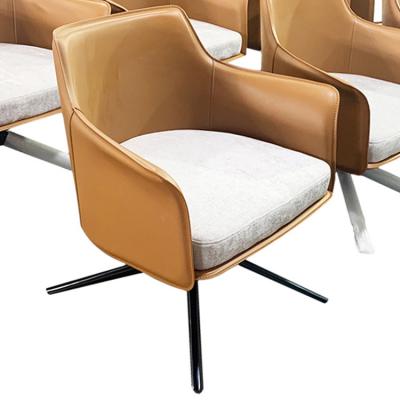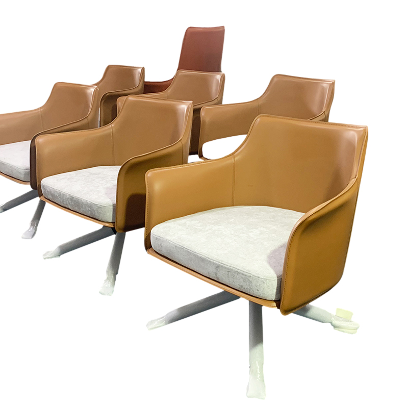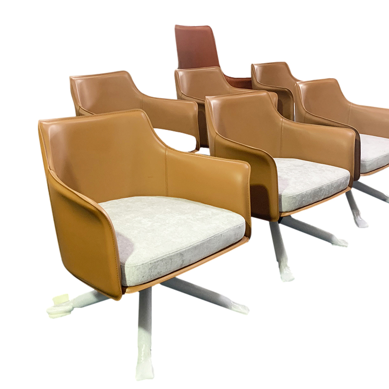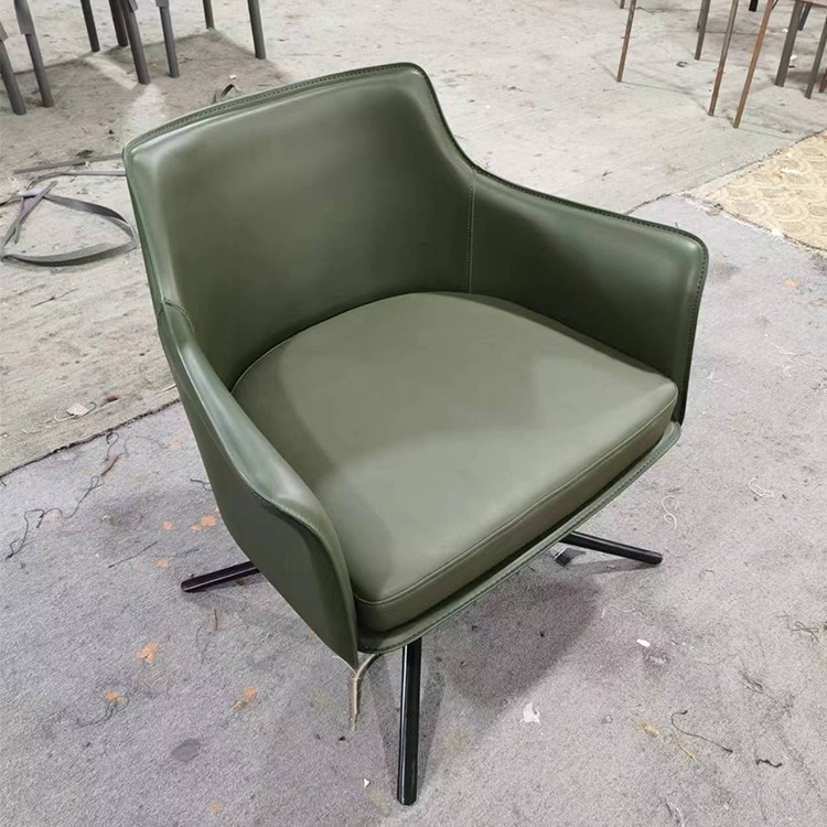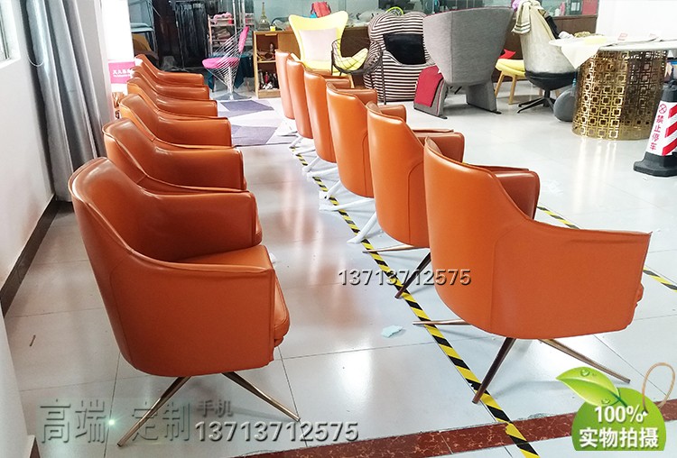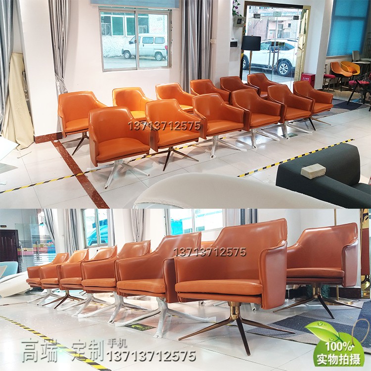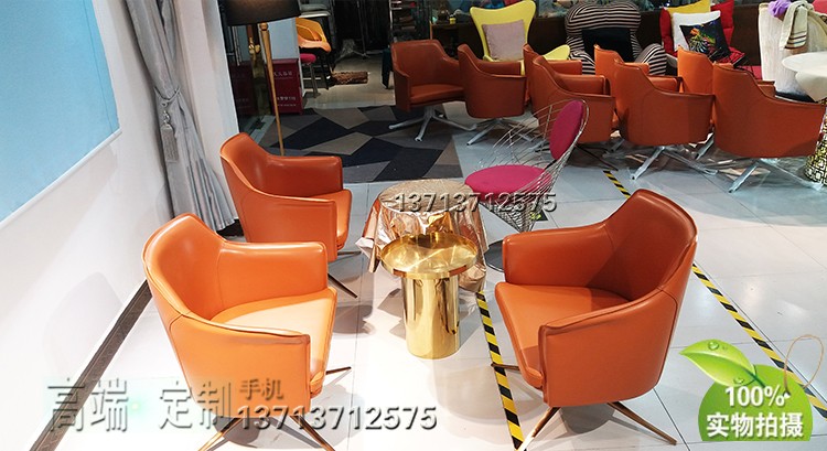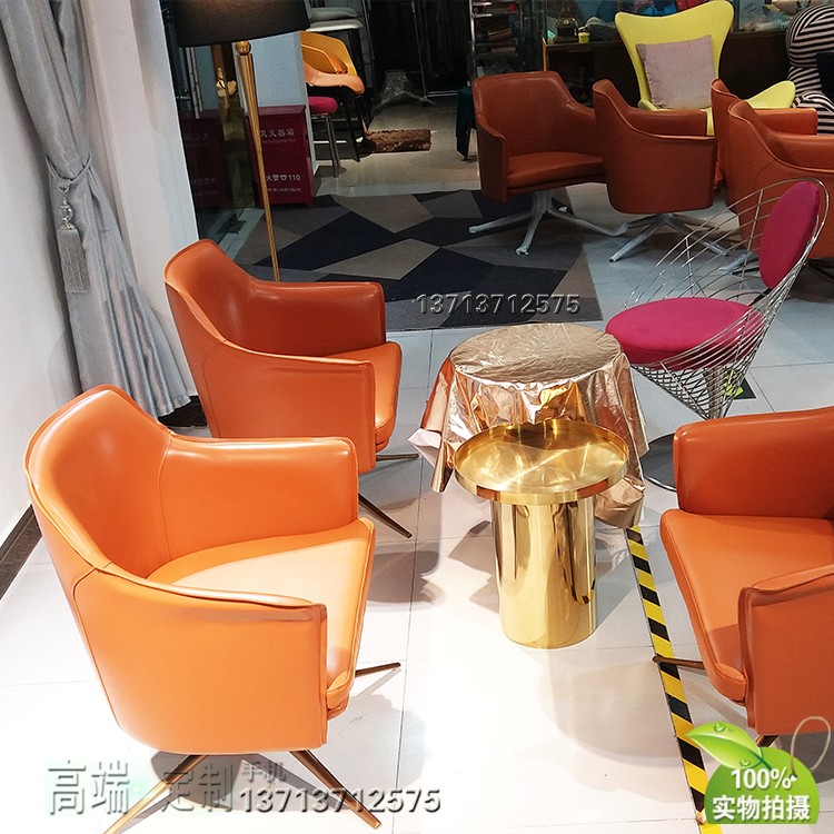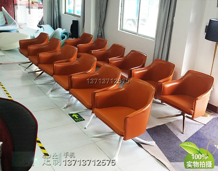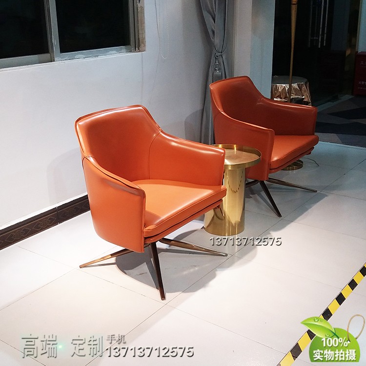 - 馬鞍皮靠背真皮座墊椅 不銹鋼玫瑰金無指紋腳 玻璃鋼斯坦福休閑椅樣板房洽談椅