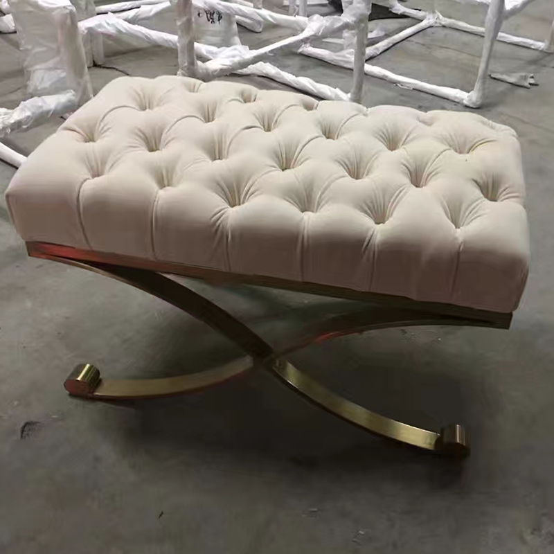 不銹鋼電鍍腳架 布藝?yán)奂~扣沙發(fā)坐墊臥室凳服裝店鞋店休息鞋凳