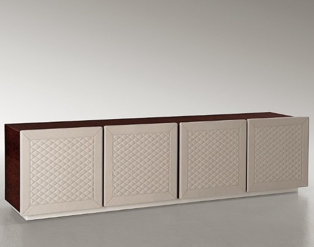 The DNA written into Bentley tradition is clearly present in the impressive Kensington living room furniture. The sideboard has the graceful lines of a thoroughbred, with the frame in the same Ebony Macassar or burr walnut used to handcraft the interiors of the iconic Bentley cars. The doors are tastefully covered in soft leather, with smooth leather acting as a frame around the central diamond-shaped tuft pattern.