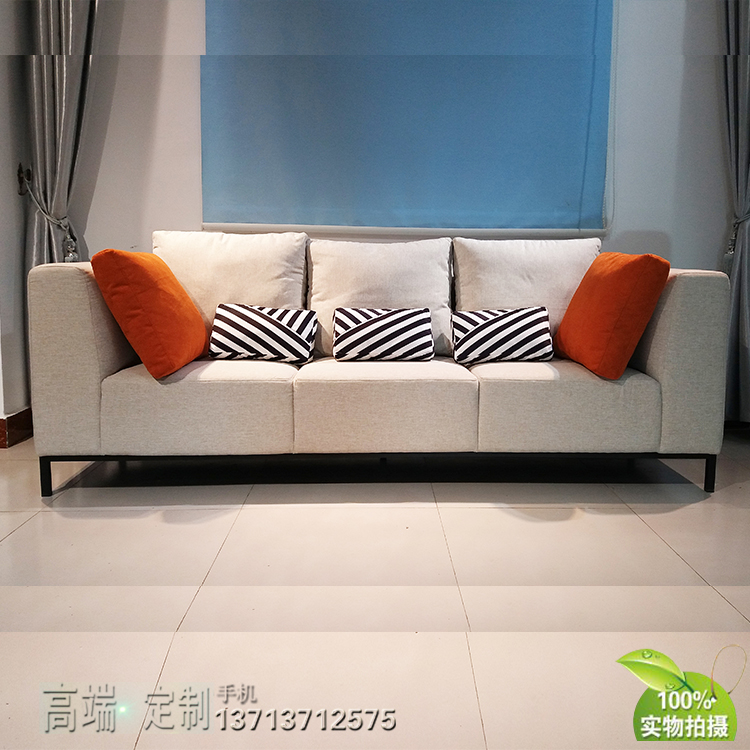 - 實(shí)物拍照北歐風(fēng)格 小戶直線一字型三人沙發(fā)布藝五金腳架 樣板房 商戶酒店會(huì)所家具定制