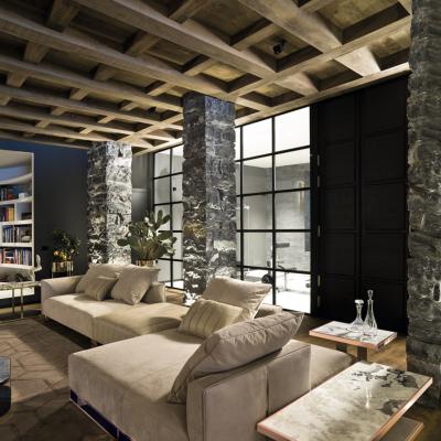 木質(zhì)框架搭配彈力帶,由多級高密度聚氨酯泡沫覆蓋。 坐墊采用滅菌鵝絨材質(zhì),內(nèi)嵌多密度聚氨酯泡沫,并搭 配"Visco Soft"。靠墊采用滅菌鵝絨材質(zhì),內(nèi)嵌低密度 聚氨酯泡沫。框架外圍的覆裹采用了絎縫菱格紋工藝。 鑒于特殊的制作工藝,框架的皮料或布料覆裹均不可拆 洗,而布料的坐墊和靠墊外罩可以拆洗。木質(zhì)底座與沙 發(fā)使用相同的覆裹材料。底座金屬輪廓圈可選用下列表 面處理:光面淺金、啞光香檳金、光面黑色鍍鉻、光面 鍍鉻或啞光磨砂古銅。除了傳統(tǒng)的高扶手以外,所有的 沙發(fā)和組合部件都可以在一側(cè)或兩側(cè)安裝另外一種低扶 手,以使單件或組合沙發(fā)都能體現(xiàn)讓人愜意的流動感。 作為補(bǔ)充,在低扶手模塊上還可以選用金屬置物臺面 (與底座輪廓圈相搭配)或相應(yīng)形狀的大理石。Port Saint Laurent大理石; Rosso Levanto大理石; Bardiglio Nuvolato大理石; Elegant Brown大理石; Palissandro Oniciato大理石; Emperador Dark大理石; Silver Wave大理石; Agatha Black大理石; Frappuccino大理石; Calacatta Gold大理石。 玫瑰色、藍(lán)色、古銅和煙灰色鏡面。 本款沙發(fā)深度僅為95厘米。