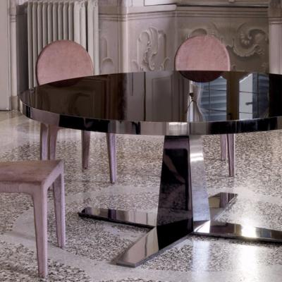 0Manfred - 此款餐桌底座為激光切割"Sequence(序列)"圖案的弧 形拋光金屬。結(jié)構(gòu)表面處理: 光面淺金色; 啞光香檳金; 光面鍍鉻;