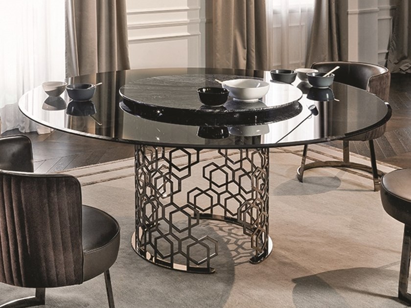 For the round table, a revolving tray (cm ? 75-90-110) to set on the tabletop is available in the finishes from the catalogue.?