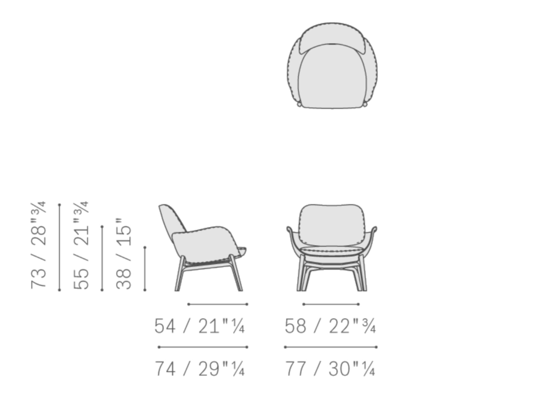 The colour effects and material combinations emphasize the fluidity and lightness of Martha.? The outside of the frame is upholstered with a rich shell of Saddle Extra Leather while the inside can be covered in Pelle Frau? leather or fabric.? The combination of the two materials is emphasised by the elegant visible-contrast hand-stitching.? A soft seat cushion with removable cover in Pelle Frau? leather or fabric completes the product.?