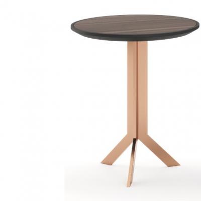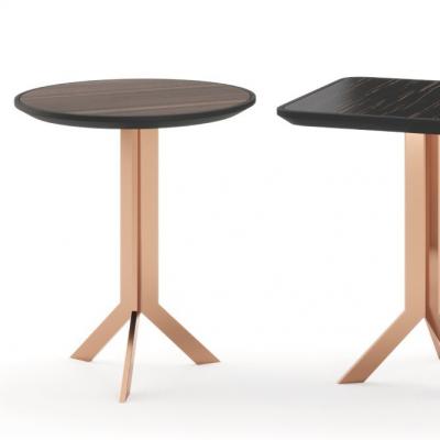 With a strong personality, Lady side table is a distinct piece with crossed legs in coated stainless steel and a chamfered top finished in exotic veneer.? A contemporary design ideal to have by the sofa.?