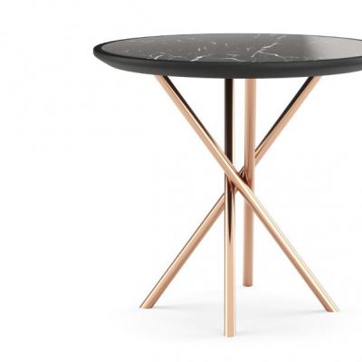 With a strong personality, Lady side table is a distinct piece with crossed legs in coated stainless steel and a chamfered top finished in exotic veneer.? A contemporary design ideal to have by the sofa.?