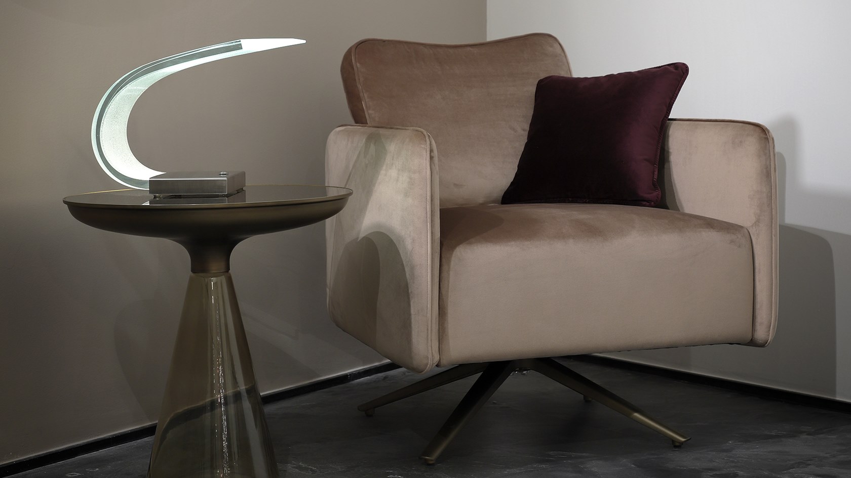 四面采用金字塔設(shè)計(jì)和雙管道。鵝毛靠墊,硬質(zhì)聚氨酯嵌件。金屬腿底座,緞面黃銅(104M)或深黃銅(105M)或黑色鎳飾面。軟墊,織物或皮革