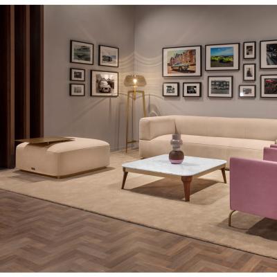 V255沙發(fā)采用緞面香檳金色金屬底座,完全采用織物裝潢,并可完全定制,這要?dú)w功于多種獨(dú)家面料和手工處理的苯胺皮革,有50多種顏色可供選擇