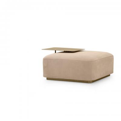 Pouf with tray, in leather Nabuk col.? Sand, metal base & tray in light gold finish.?