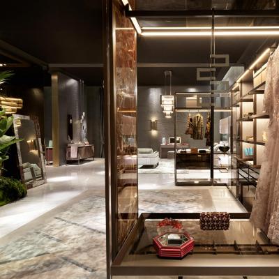 這種薄型結(jié)構(gòu)是基于獨(dú)有的鋁立柱,帶有隱形耦合和布線(xiàn)系統(tǒng),可以完全自由地放置貨架和配件。側(cè)面和背面可定制皮革、織物、木材、鏡子以及頂級(jí)解決方案,如大理石。一個(gè)獨(dú)特的風(fēng)格創(chuàng)新,為定制潛力,結(jié)合創(chuàng)新的技術(shù)特點(diǎn)。