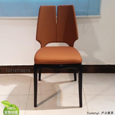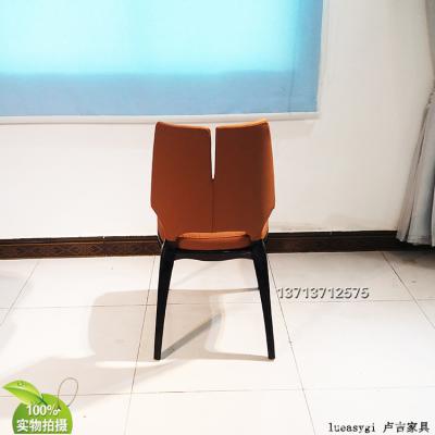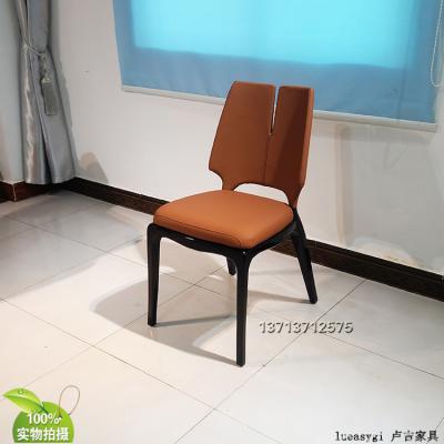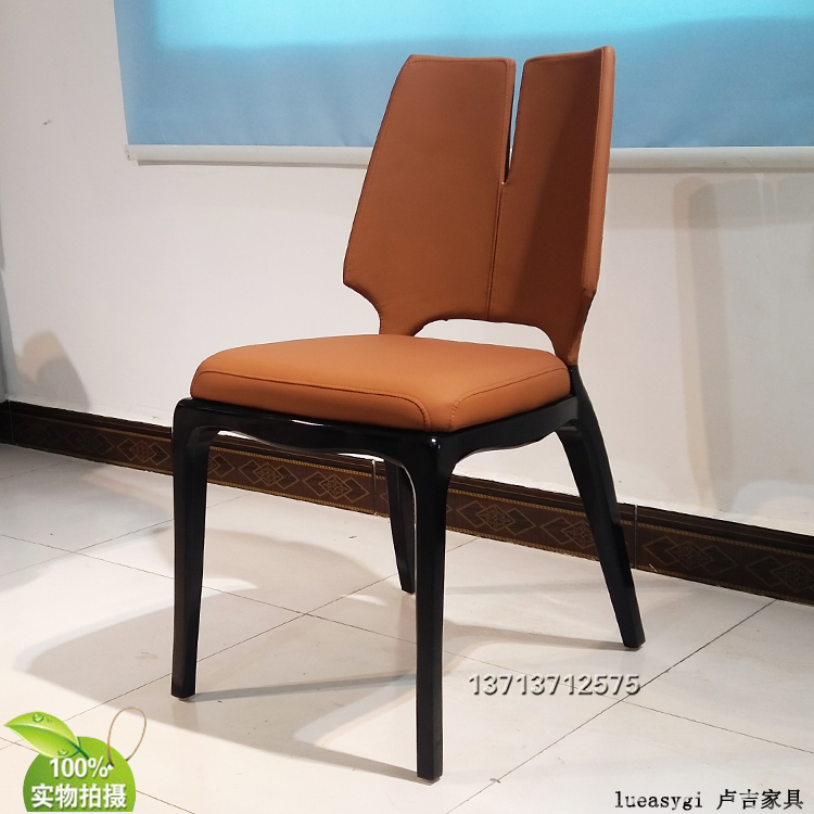 法國設(shè)計(jì)師餐椅新中式 實(shí)木腳架 異形餐椅洽談椅 布藝西皮革真皮
