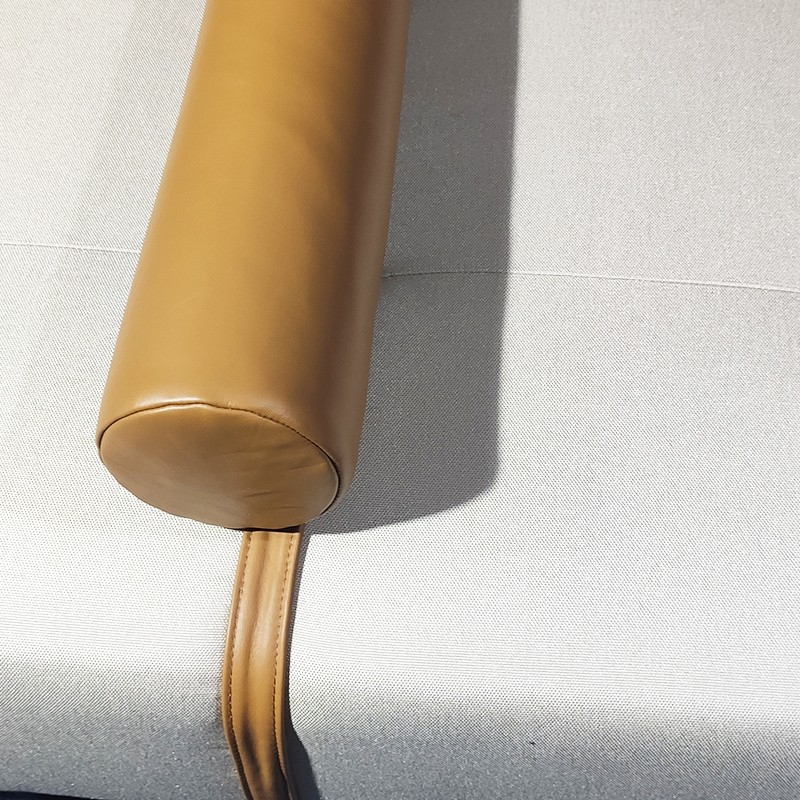收集完成后款配有皮革圓柱形頭枕,系彈性帶。?