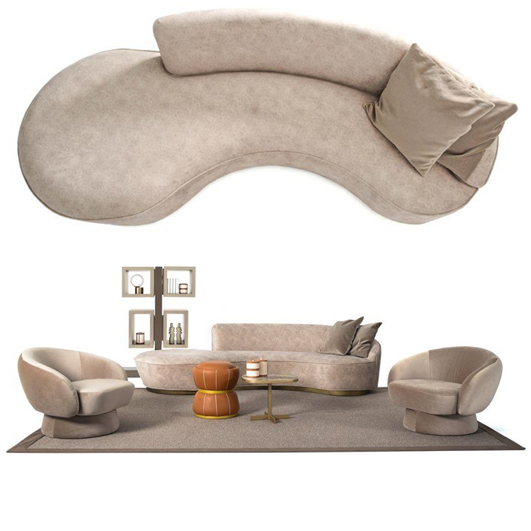 第二款:意大利設(shè)計(jì)師現(xiàn)代弧形 極簡婚紗店酒店單人多人位羊絨布彎曲沙發(fā)
