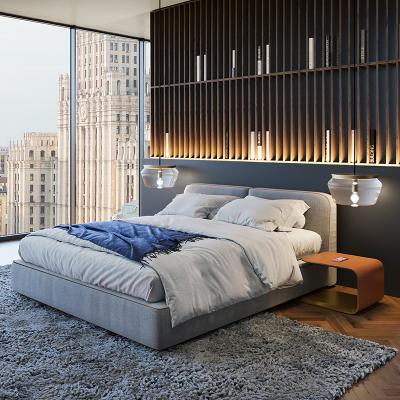 阿斯頓·馬丁 臥室雙人床帶邊幾 不銹鋼金色皮革茶幾