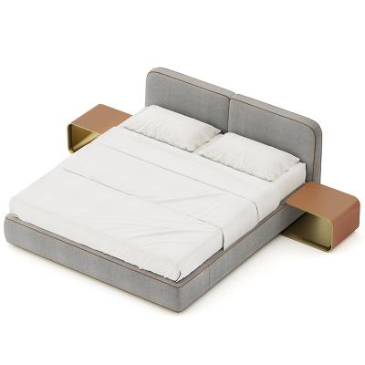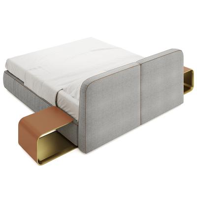 Aston Martin阿斯頓·馬丁 臥室雙人床帶邊幾 不銹鋼金色皮革茶幾阿斯頓·馬丁 臥室雙人床帶邊幾 不銹鋼金色皮