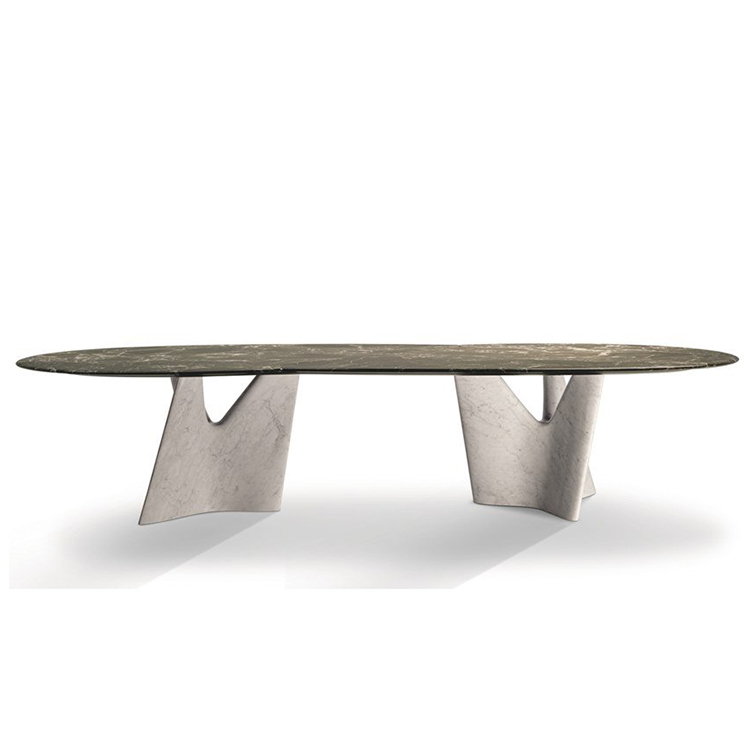 意大利Flou 弗洛無(wú)限桌子 大理石茶幾 玻璃鋼腳座 意式家具無(wú)限桌子