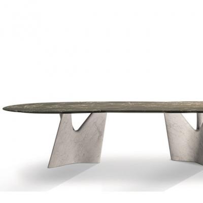 這一切都始于土耳其的一個(gè)采石場(chǎng),原創(chuàng)在那里提取了珍貴的大理石,其特征是色調(diào)從紅色到紫色不等,多虧了一些未知和無(wú)法解釋的自然事件,一小段狹窄的山脈呈現(xiàn)出深沉的圣人色調(diào),帶有深綠色的陰影,經(jīng)過(guò)典型的清晰脈絡(luò)和一些原始顏色的微紅色內(nèi)含物。物理學(xué)家羅伯托·拉澤羅尼設(shè)計(jì)了一款帶有圓形線條的大上衣,以其更明亮或更微妙的細(xì)微差別提升了紋理綠色的美感。一棵樹(shù)的形狀向外張開(kāi),帶有“樹(shù)枝”,耐心、輕盈和活力,進(jìn)一步提升桌子的優(yōu)雅和強(qiáng)烈的雕塑價(jià)值