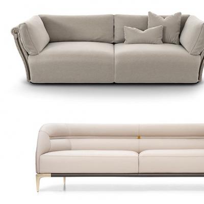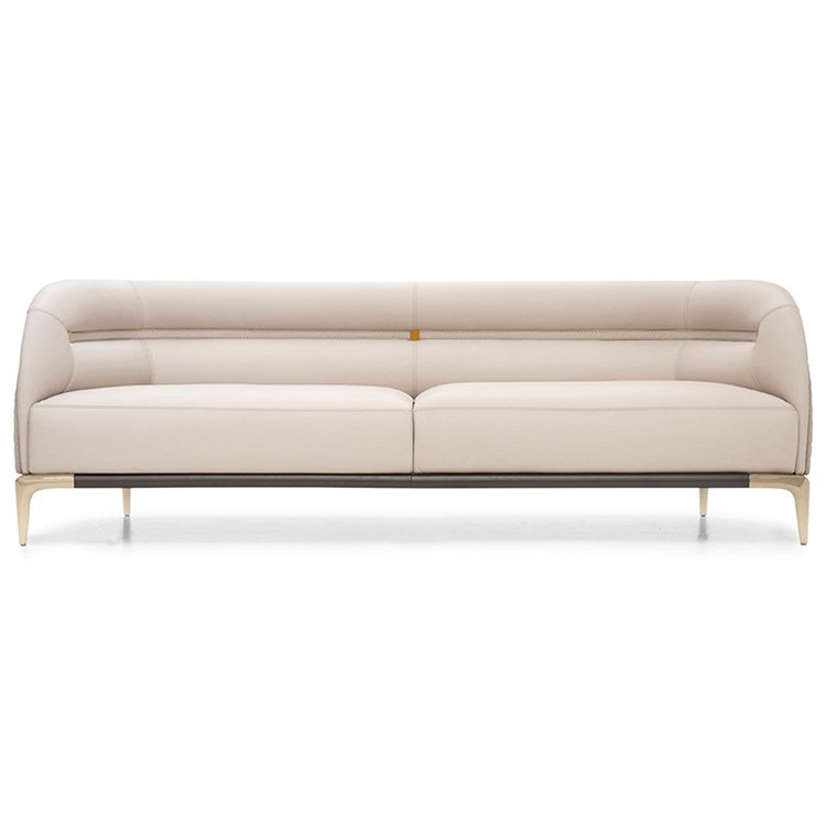 TL-2314-Sofa-B:三座沙發(fā),真皮或織物軟墊,外框采用絎縫絨面革,底座采用實(shí)木,帶金屬支腿