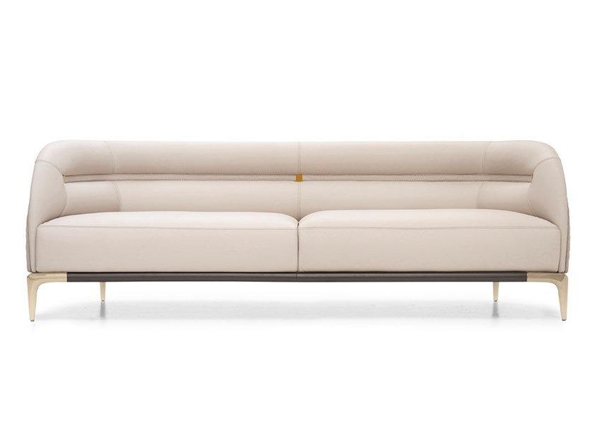 TL-2314-Sofa-B: 3-seater sofa, upholstered in leather or fabric, outer frame in quilted technosuede, Base in solid wood with metal legs