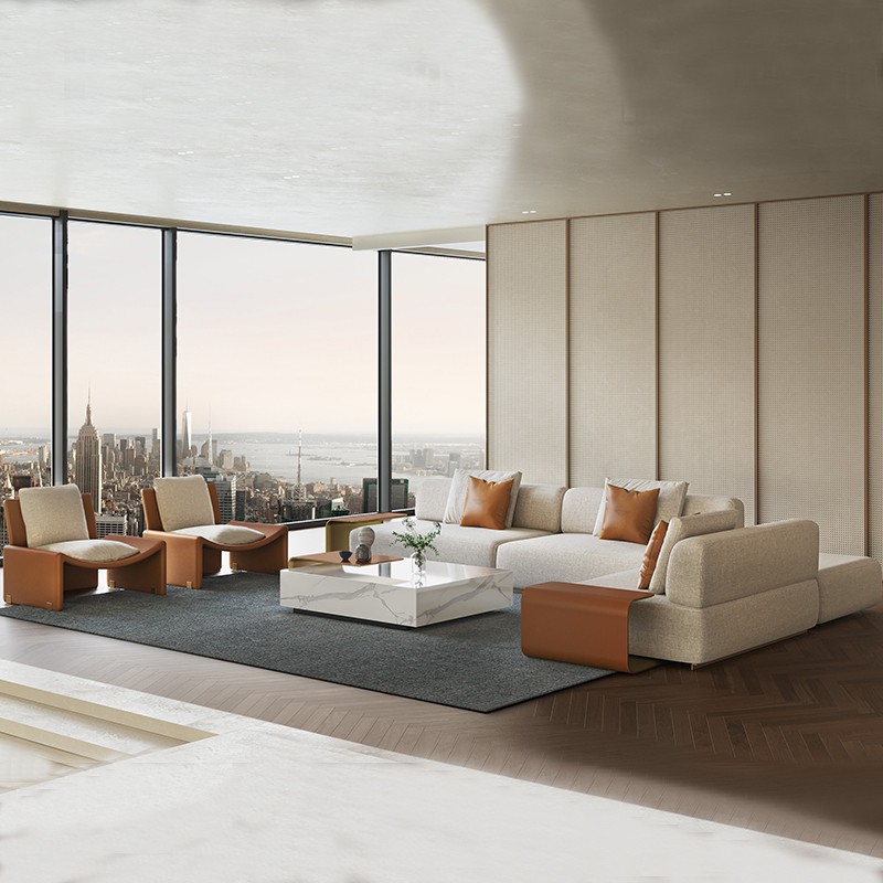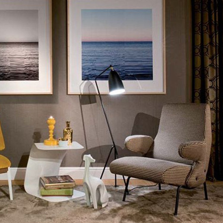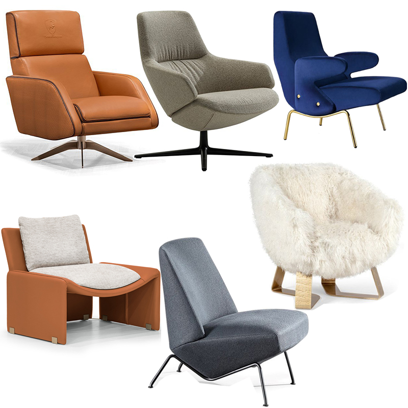 扶手椅:皮或布藝,金屬腳采用淺金色飾面