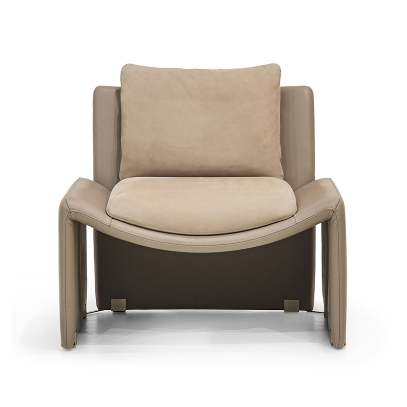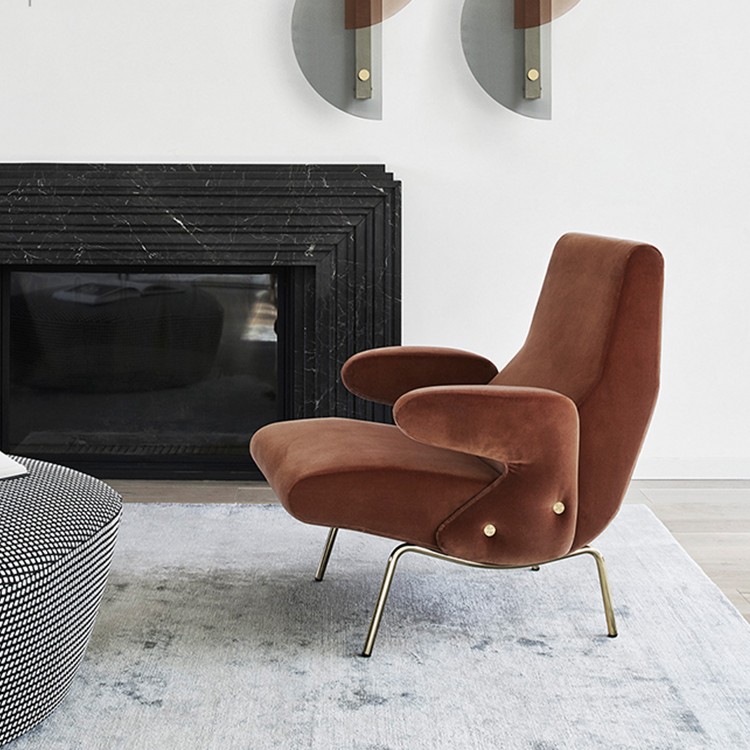 第四款:阿斯頓·馬丁 扶手椅 意式極簡(jiǎn)輕奢休閑椅 皮質(zhì)真皮布藝 不銹鋼金色裝飾