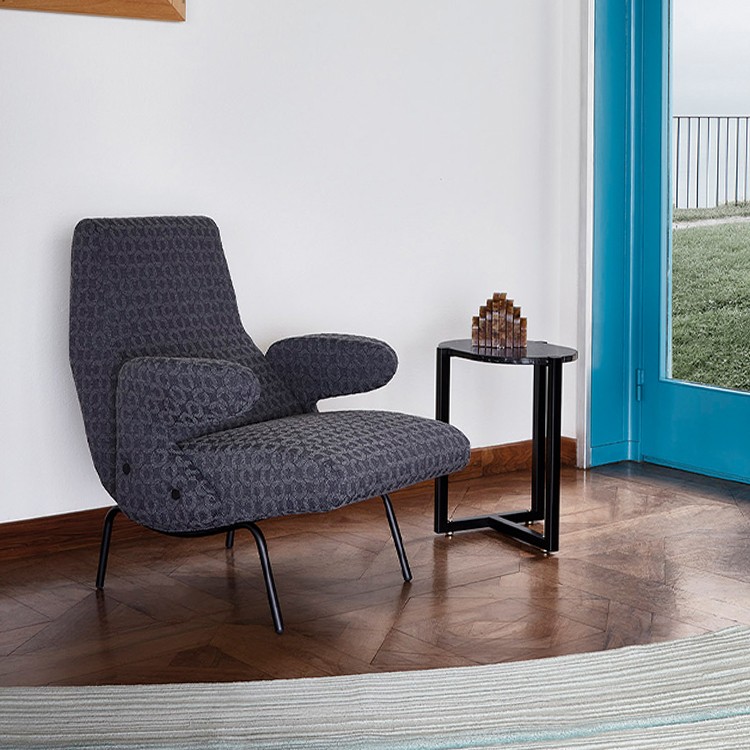 Sleek, which smoothly relates with the surrounding space, represents a new idea of comfort and visual appeal, Able to dynamically interpret the needs of those who seat on it Lipparini, featuring discreet cuts and harmonious geometries, Reachs the spirit of Italian mid-century modernism. The combined seate-backrest modernism sits on a metal structure With an aesthetically light design, both in the version with central leg and with four legs