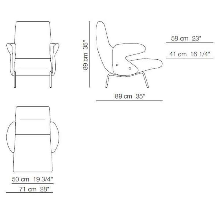 The development of this concept gave a very decorative result and produced items, like Delfino, With a strong personality. Heartily with arm like fins and a supple body like a dolphin, this Armchair, Designed in 1954 by Erberto Carboni took its name from the gracefulmsea-keepers