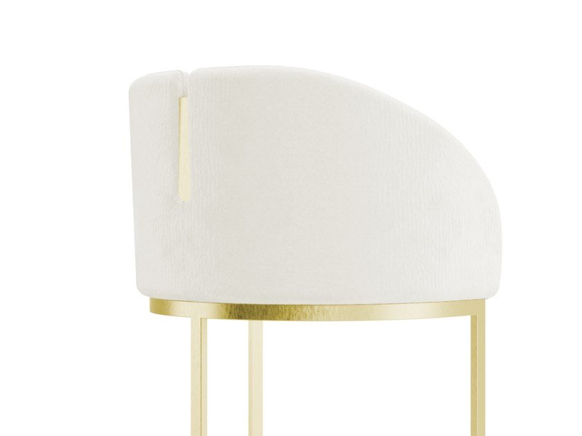 The ISADORA dining chair has become one of The public's favorite pieces from The Studiopepe collection with Essential Home, so the designers decided to elevate the spark and create a sleek and modern bar chair that features the same symmetrical Flair. The ISADORA bar chair is an artistic furniture design that is upholstered with The finest velvet textile and Features a minimalist brass base to complement the look