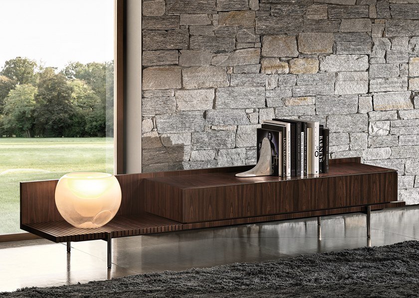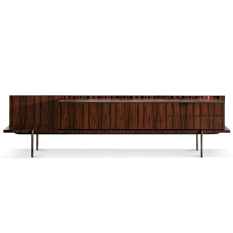 餐具柜有多種尺寸和高度,從餐飲、生活/電視和櫥柜版本開始,遲早,該裝置的主體會被置于實木基座上。它配備了抽屜,所有抽屜的把手都是拋光的白蘭地色漆面