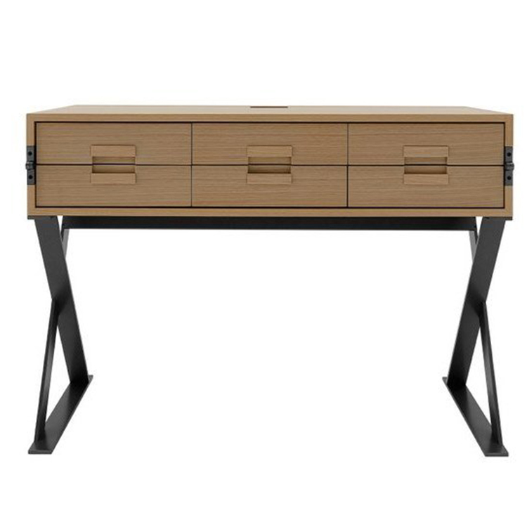 意大利Antonio Citterio設(shè)計電腦桌子 馬克斯書桌長復(fù)古新中式實木五金不銹鋼 X形Z形腳書柜