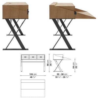 馬克斯是一個寫字臺,讓人想起一個帶有當(dāng)代風(fēng)格的經(jīng)典辦公桌,是櫥柜制造商藝術(shù)中的一顆小寶石。使之成為珍貴的寶箱。這種翻蓋辦公桌的主要特點是鋼結(jié)構(gòu)的特殊X形設(shè)計和抽屜的幾何設(shè)計。這張桌子有多種木材,大小相同