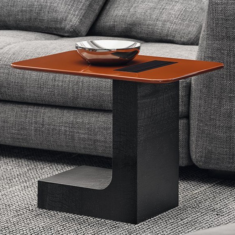 以實木塊結(jié)構(gòu)為特色,塊狀咖啡桌的底座被設(shè)計成一個“L”形或倒置的“T”形的實體。? 在莫卡漆橡木中,它由一個頂部完成,使嫁接物在清晰的視野中出現(xiàn)在表面上。?
