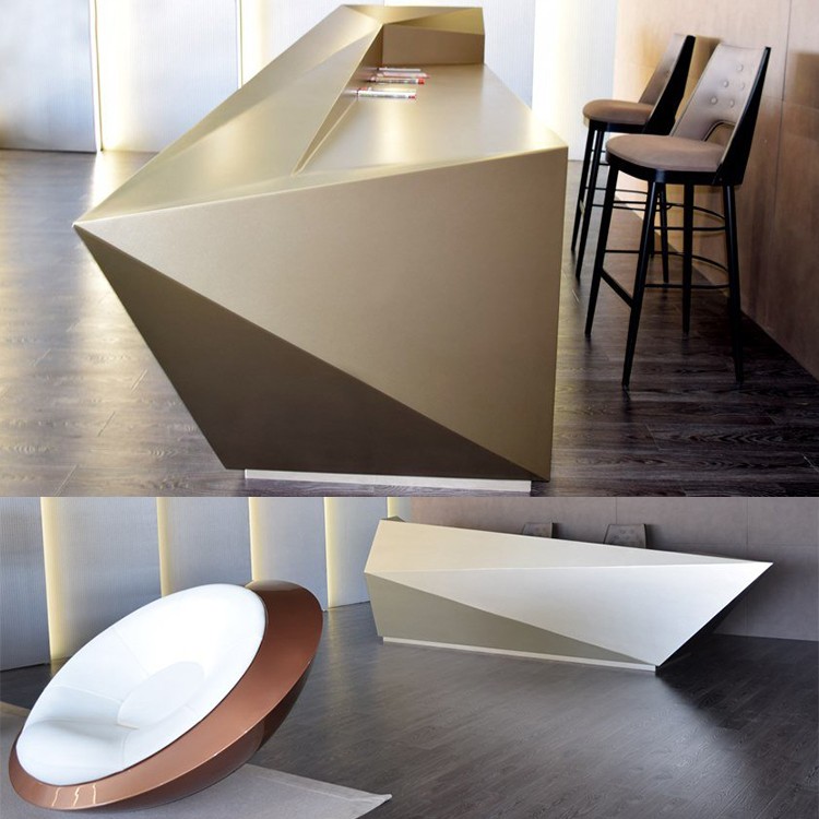- Albania VIP Saloti 阿爾巴尼亞貴賓希望前臺桌子 玻璃鋼鍍金 木漆色幾何線形桌