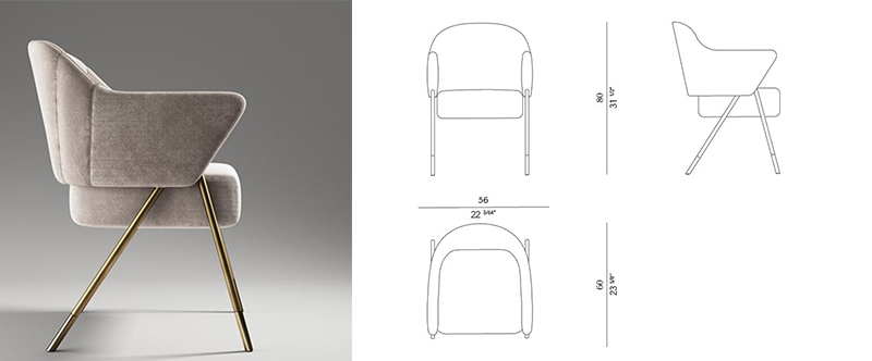 女性化,精致,絕對時(shí)尚。? Jackie將絲絨的永恒魅力帶到了客廳,并結(jié)合了緞面和拋光黃銅色的細(xì)長結(jié)構(gòu)。?它的環(huán)繞式靠背優(yōu)雅地環(huán)繞身體,形成了勻稱的扶手。?倒V形的管狀黃銅色腿和絎縫靠背強(qiáng)調(diào)了復(fù)古的味道。?